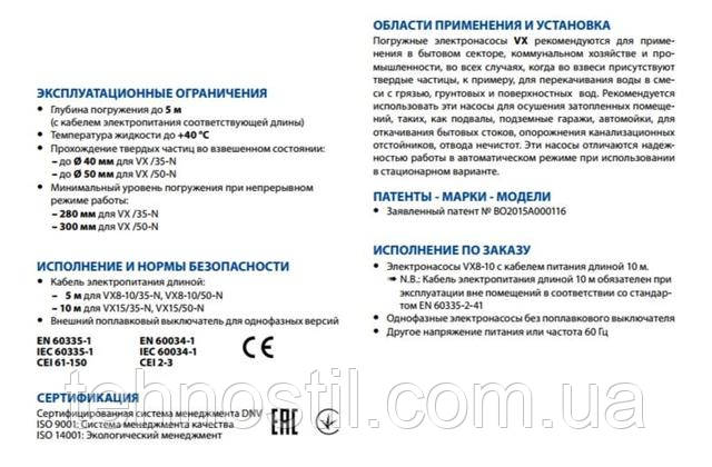 Фекальний насос Pedrollo VXm 15/50. Потужність 1.1 кВт, продуктивність до 650 л/хв (39 м³/год.). Напір до 11.5 м.