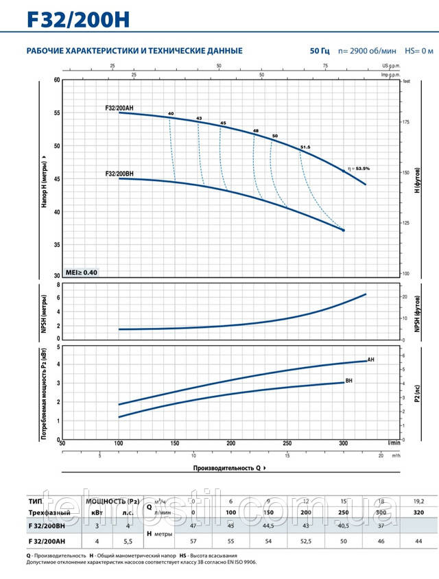 Відцентровий насос Pedrollo F 32/200BH. Потужність 3 кВт, продуктивність до 300 л/хв (18 м³/год.), напір до 47 м.